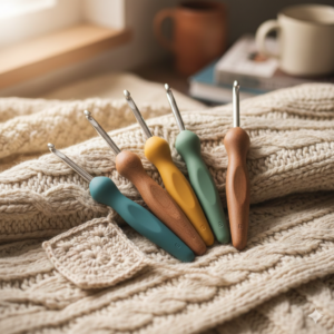 One thing that made a really big difference for me was switching to ergonomic crochet hooks. Regular crochet hooks are thin and hard, and gripping them for too long can make sore, stiff hands feel even worse. Ergonomic hooks are different because they have a thick, soft, cushioned handle that is much easier to hold. Instead of squeezing tight and straining your fingers and wrist, your hand can relax around the wider grip. I recommend Yarniss 20 Sizes Crochet Hooks 0.5mm-10mm, Ergonomic Crochet Hooks Set with Case for Arthritic Hands, affiliate link. When I made the switch, I noticed right away that I could crochet for longer without as much pain and fatigue in my hands. I wish someone had told me about them sooner! You can find ergonomic crochet hooks at most craft stores or online, and they come in lots of fun colors too. If you have rheumatoid arthritis, fibromyalgia, or any condition that makes your hands hurt or feel stiff, I really believe ergonomic hooks are worth every penny. They are one of the best little tools I have found for making crochet more comfortable and accessible on the hard days.